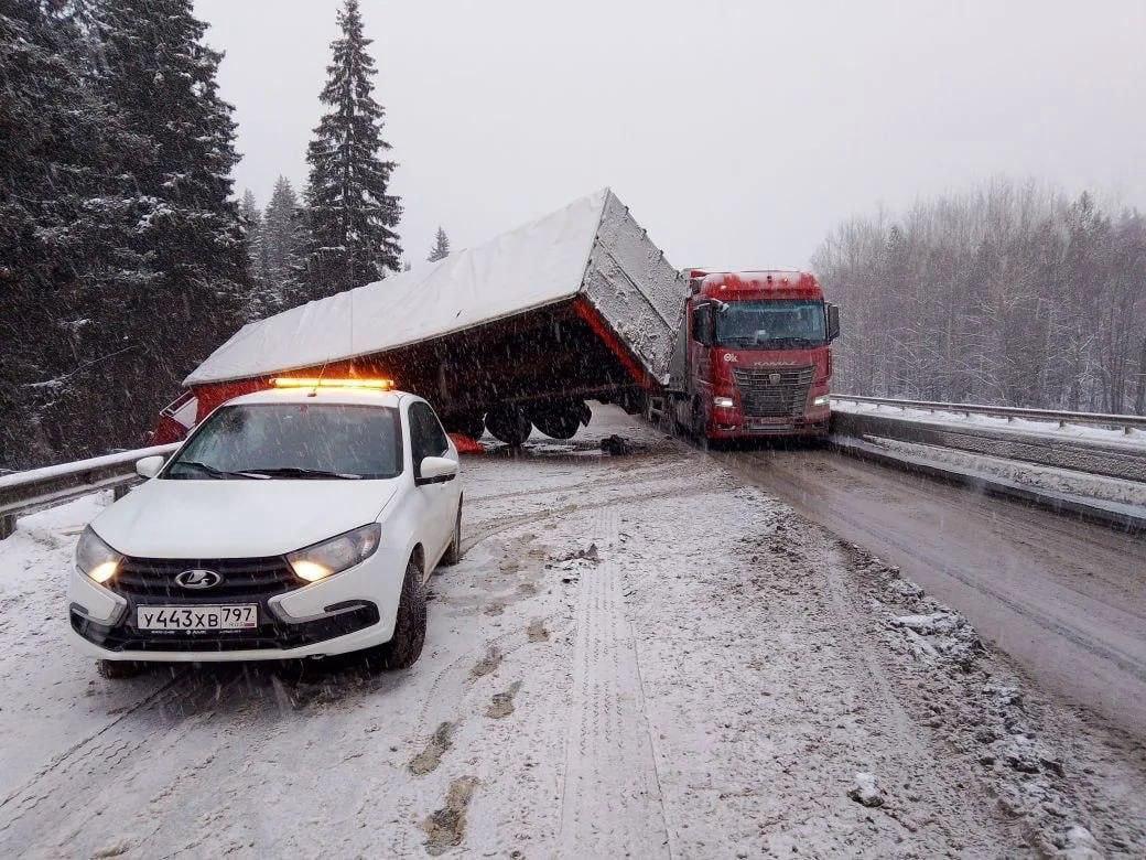 Только вечером воскресенья виновника затора начали доставать из кювета